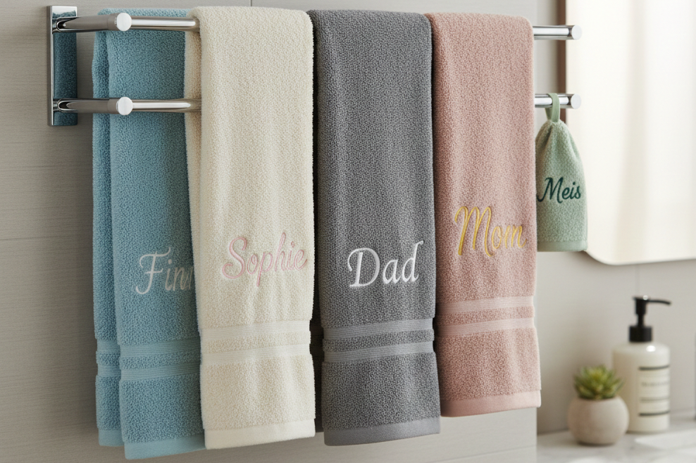 Van luxe servetten en zachte handdoeken tot washandjes, shirts en comfortabele badjassen – elk item wordt met zorg gepersonaliseerd.
