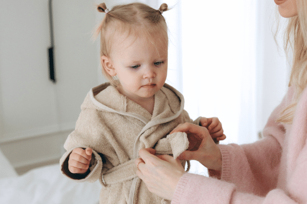 De poncho is perfect na het zwemmen of badderen. Zacht, praktisch en personaliseerbaar. Houdt je kindje warm terwijl het comfortabel kan bewegen. Een stijlvolle en handige must-have.